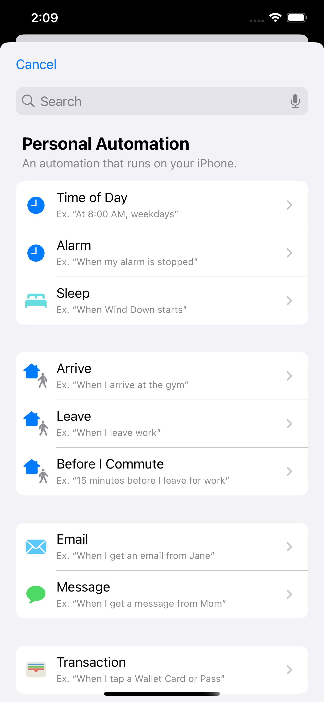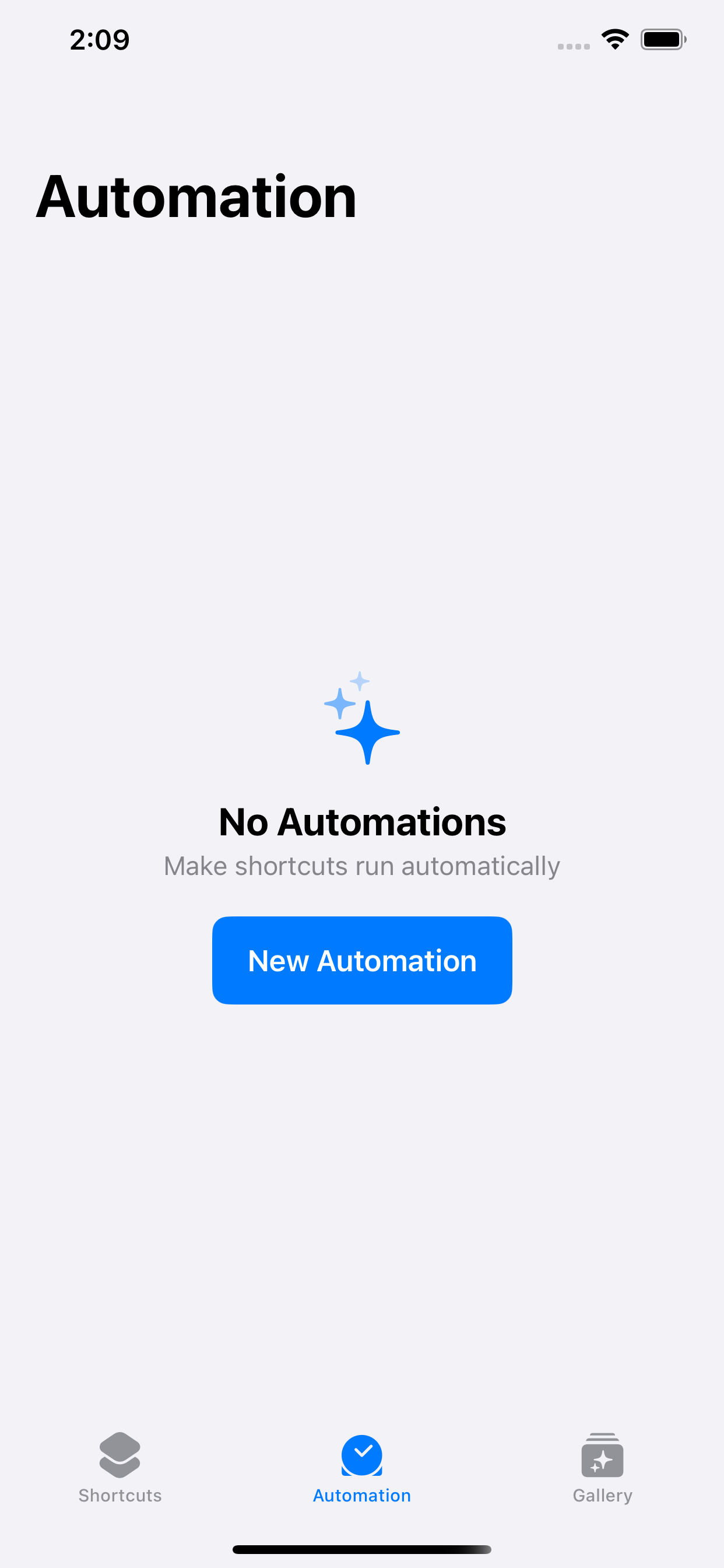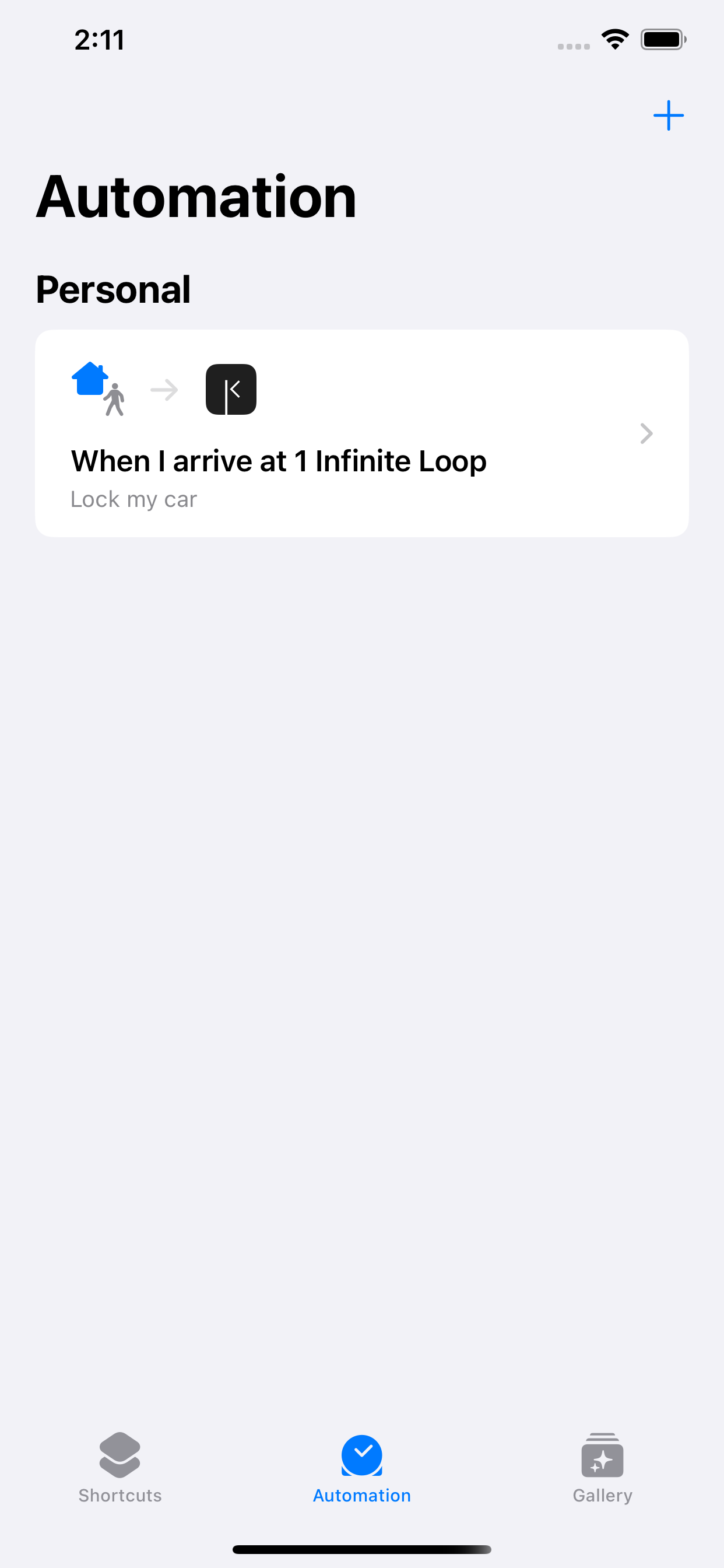 Tap + or New Automation to create a new personal automation.