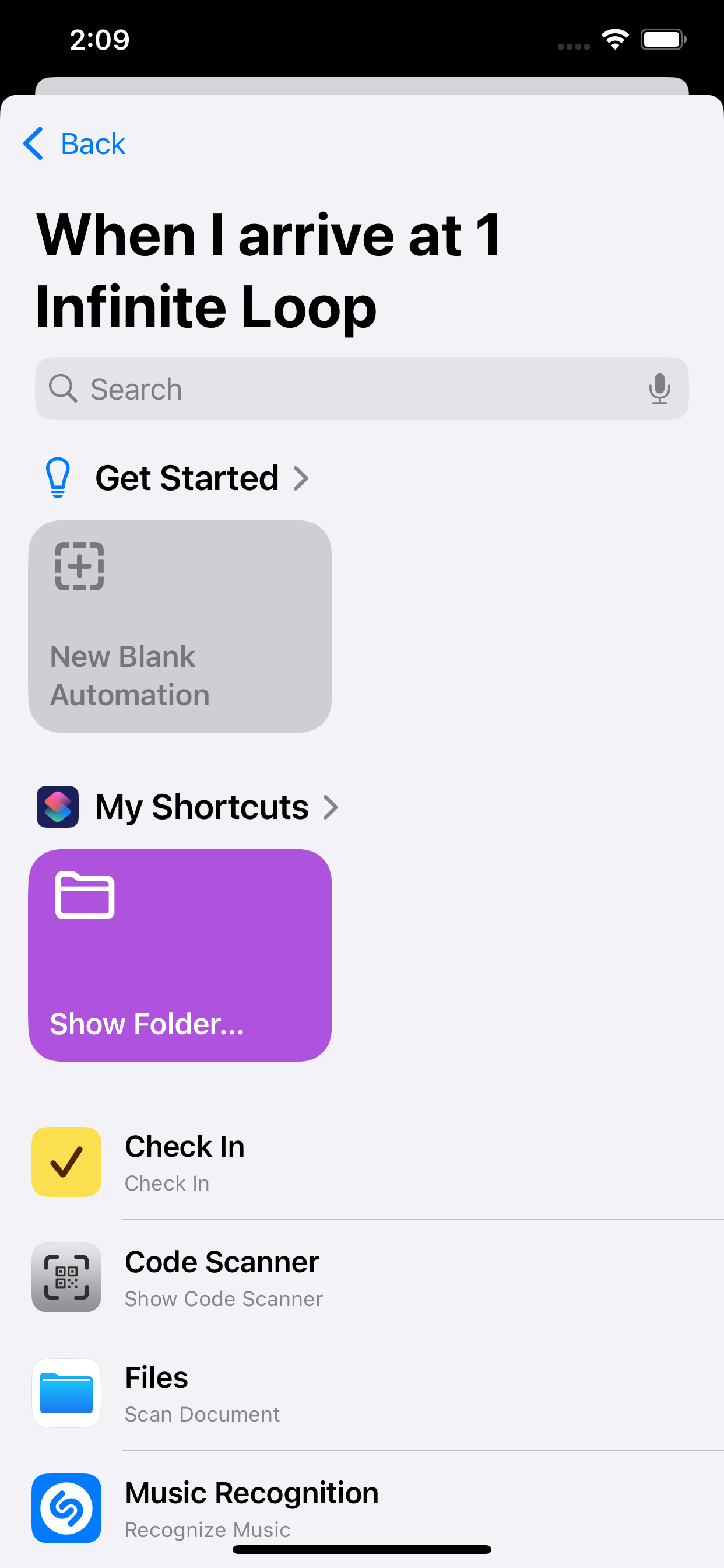 Under Getting Started, tap New Blank Automation.